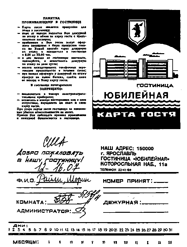 Take a look at the following list of hotels in Moscow and choose one which appeals to you. Call your travel agent (your instructor) and make reservations for a short stay. Decide if you are travelling alone or with someone. Make certain you have the correct address; check by reading it off to the agent. Ask the agent what he/she knows about the hotel, what interesting sights are located nearby (recall your expressions for getting to places!), what services are offered, how much the rooms run, whether or not breakfast is included, etc. And don't let the agent talk you into anything you don't want!