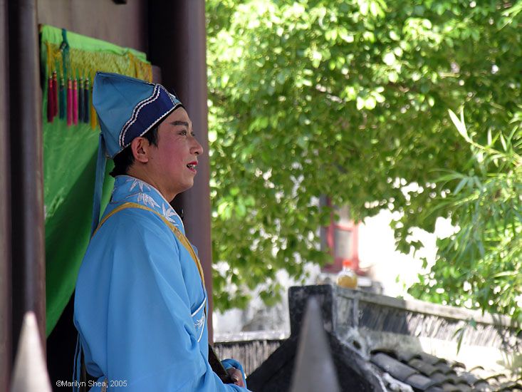 | Most of the performers come from Suzhou and Shanghai and study traditional opera at least part-time. That is one advantage to the performances in the village square - the young people have a place to practice the traditional arts and to support themselves doing so. |