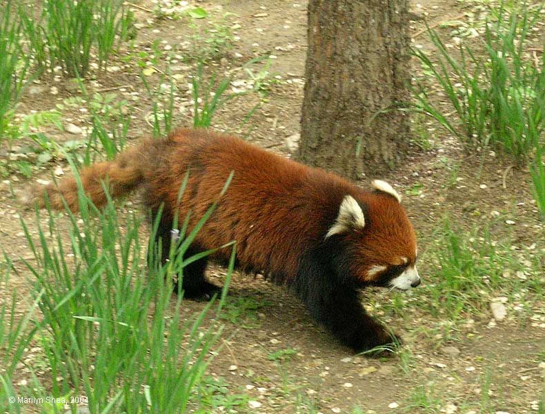 | Notice my paws. They are turned in for tree climbing, just like the giant panda's. But notice the tail, have you ever seen such a fine tail on a giant panda? |