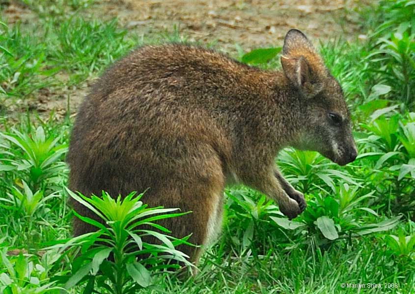 | While the forepaws of the kangaroo are good at manipulating objects, the hind paws have sharpened claws and enormous power. The hind leg can cut through the belly of an attacker in one stroke. |