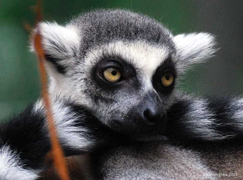 | The ring-tailed lemur, 环尾狐猴 (huánwěi húhóu), is classified as Lemur catta. It is indigenous to Madagascar. The ring-tailed lemur is threatened with extinction by the spread of humans into its natural habitat. It's very popular in zoos and breeds well in captivity, so there are quite a few world-wide. The zoo population is no substitute for having Lemurs in their own wild form. |